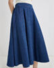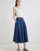 Il denim, dinamico per natura, sfuma i confini tra casual e moda: come dimostra questa gonna a ruota che reinterpreta una vestibilità svasata con tagli sbiechi e cintura con dettaglio elastico. Svasata con un tocco aderente.
