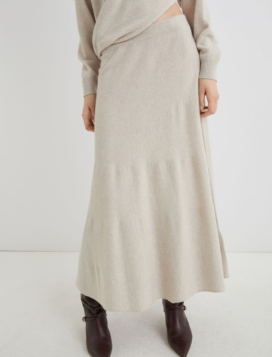 • Gonna al polpaccio in tessuto misto cashmere e lana