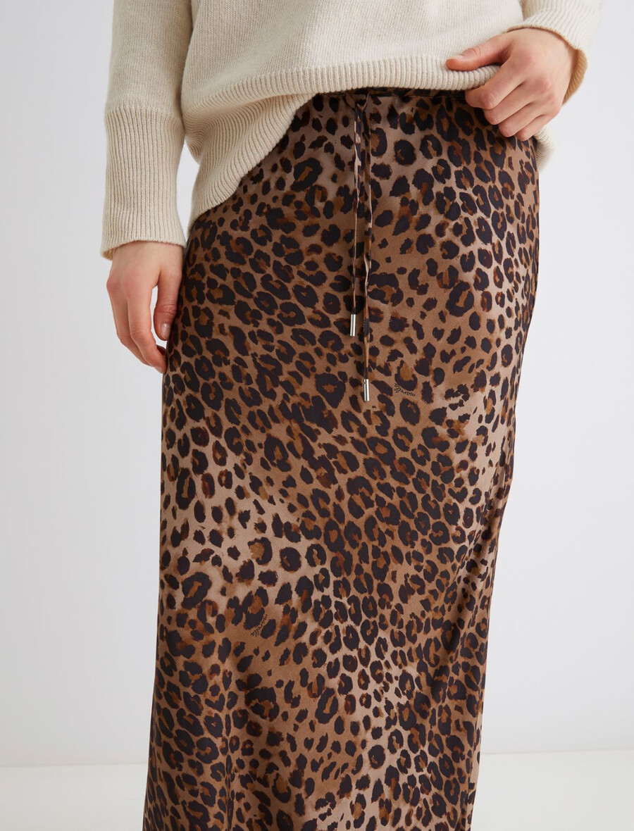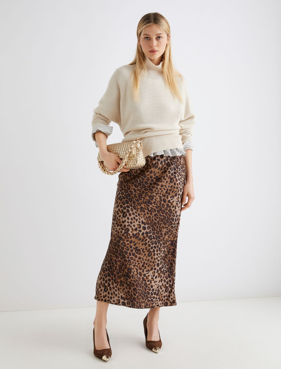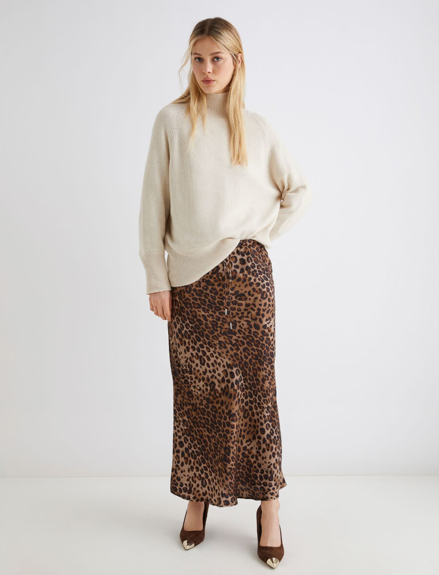Questa gonna al polpaccio in morbido twill di viscosa sfoggia una grintosa stampa animalier. Aggiungi un maglione e una blusa in pizzo per la massima sensualità.