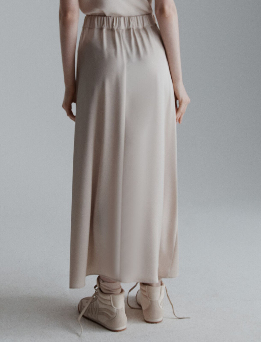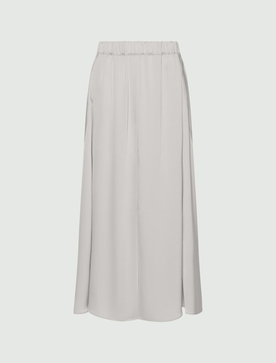 Il fluido e vaporoso tessuto satinato aggiunge un tocco sofisticato a questa gonna svasata lunga fino al polpaccio. Perfetta per l’ufficio, la sera o per uscire con gli amici.