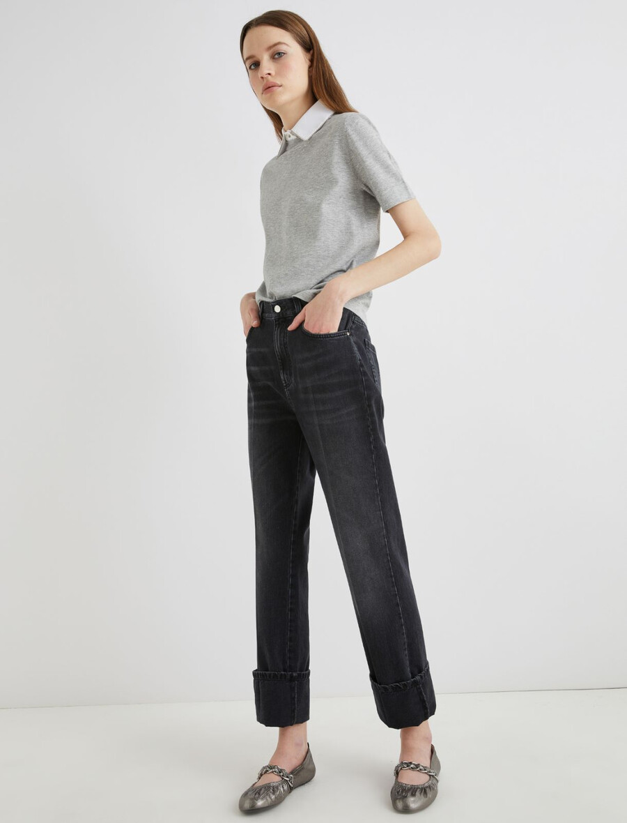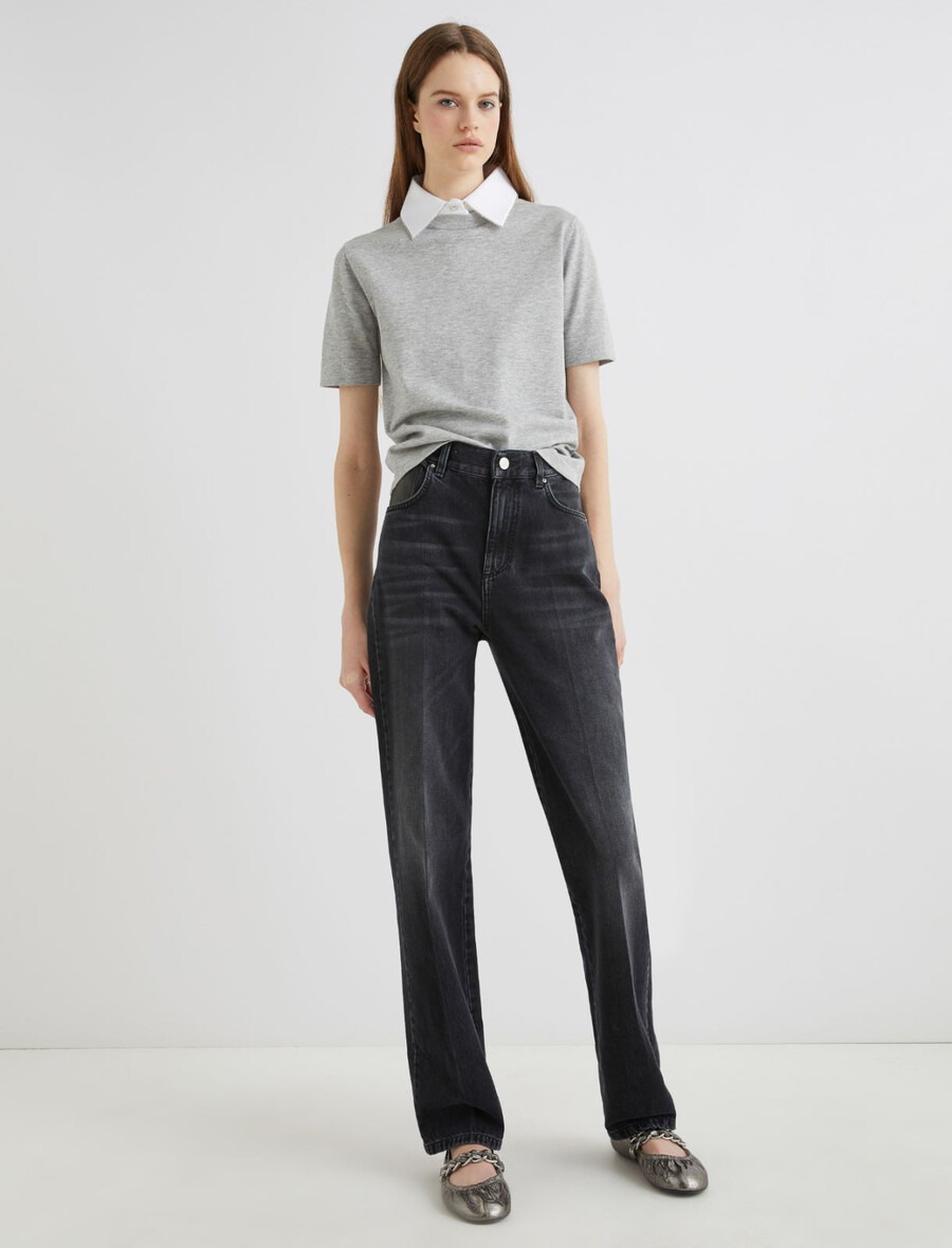 Jeans a gamba larga con impunture – NERO