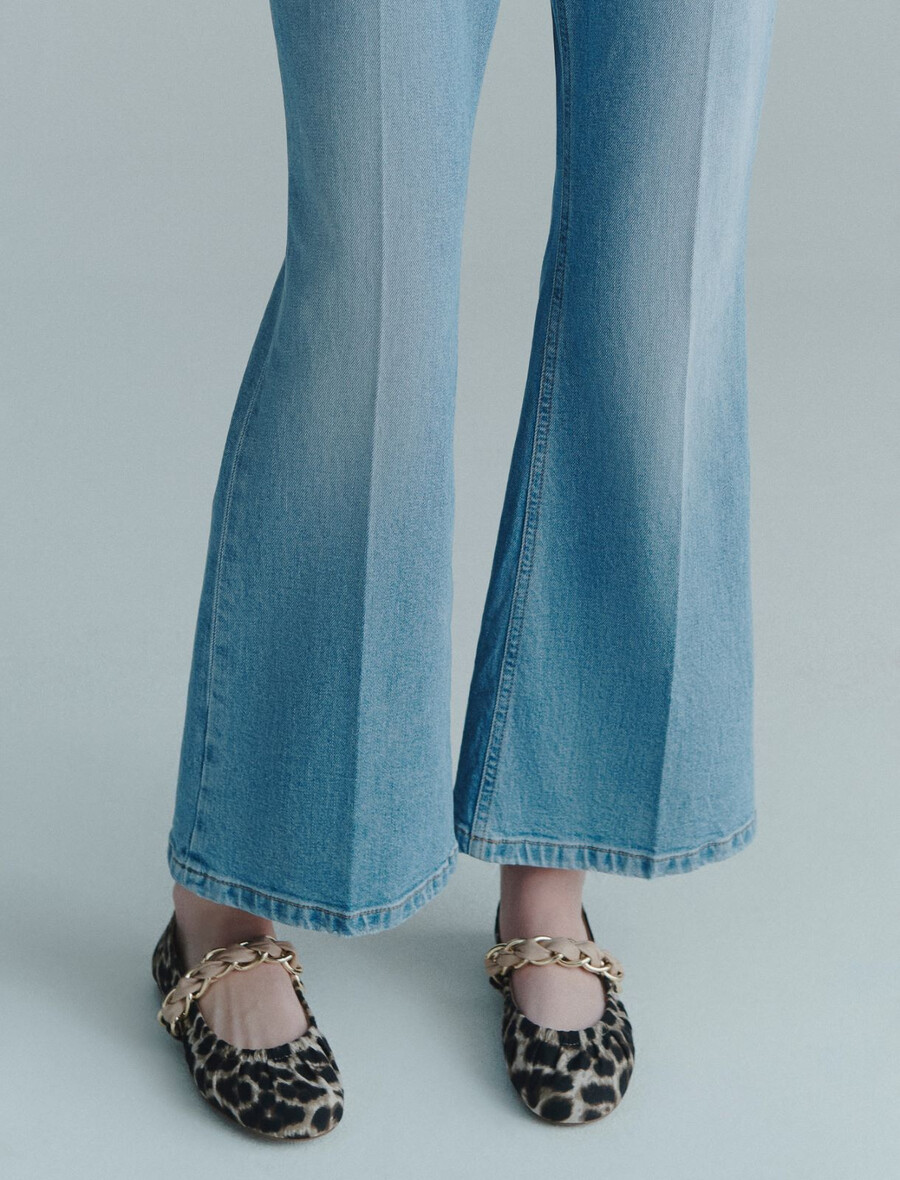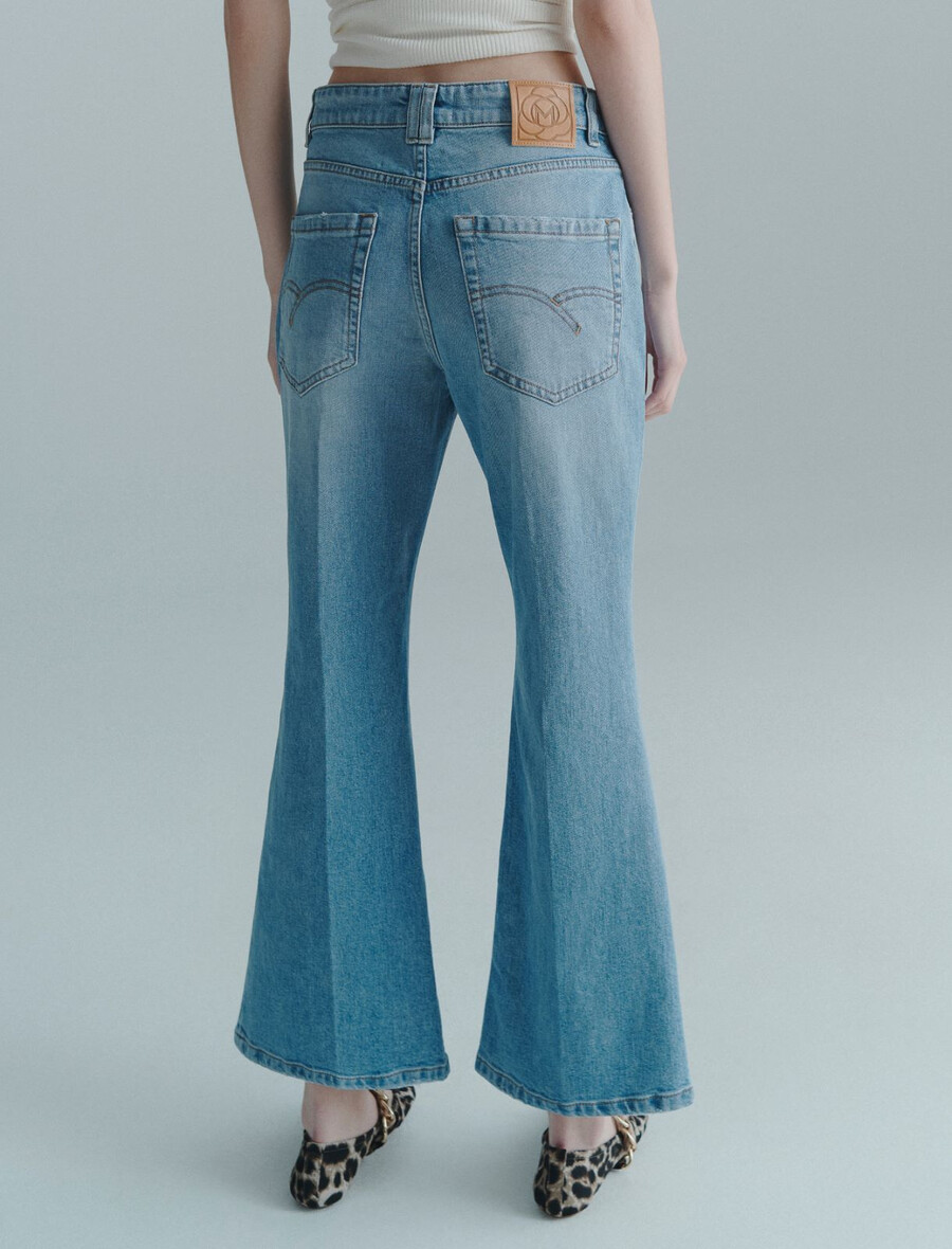 Un capo essenziale per le giornate informali: questi jeans a zampa sono stati rivisitati con un taglio cropped alla caviglia. Le linee multiple snelliscono la silhouette, pur mantenendo un look leggero e versatile.