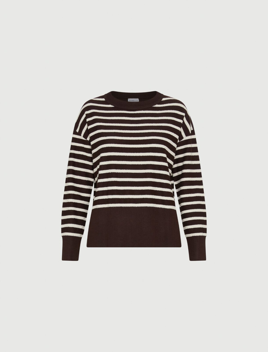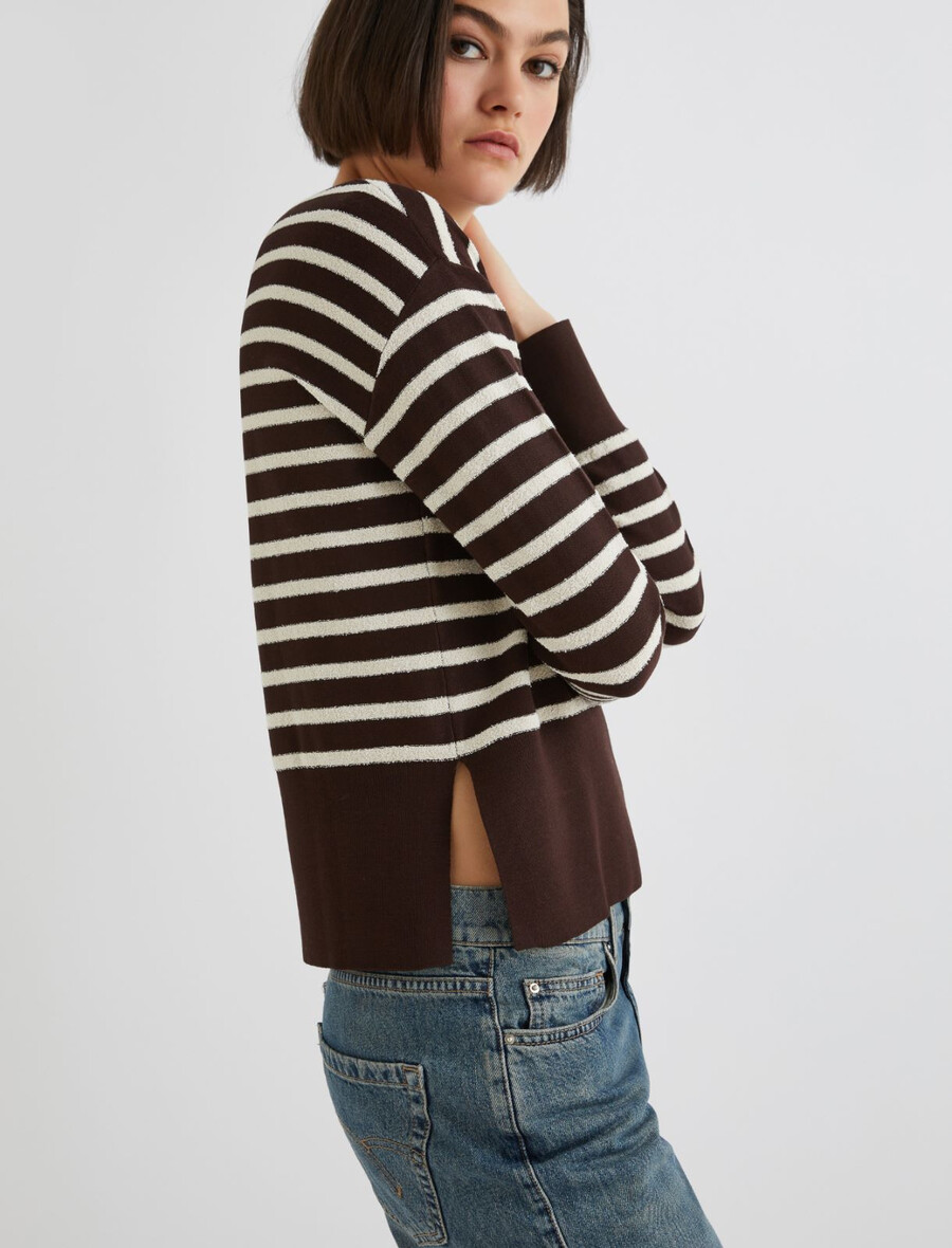 Questo maglione bouclé leggero e morbido è un capo stiloso indispensabile per le giornate più informali. L’orlo profondo a coste aggiunge un tocco audace e grintoso.