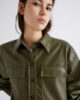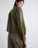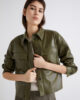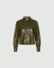 Questa camicia dal taglio cropped in vita si distingue per il tessuto in jersey spalmato effetto pelle. Essenziale e versatile: adatta a molteplici abbinamenti, dai pantaloni sartoriali alle giacche cropped della collezione.