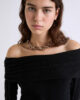 Lo stile più cool dell’inverno accarezza la pelle: indossa questo soffice maglione con scintillanti dettagli in micro-paillettes. Il collo a cappuccio lascia scoperte le spalle per una sensualità avvolgente.