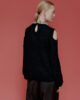 Questo maglione con spalle scoperte, realizzato in filato di alpaca avvolgente e confortevole, è stato progettato per offrire un look sofisticato durante le festività invernali. Presenta piccole applicazioni gioiello sul collo.