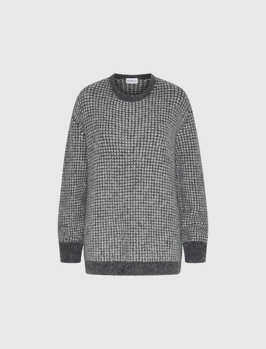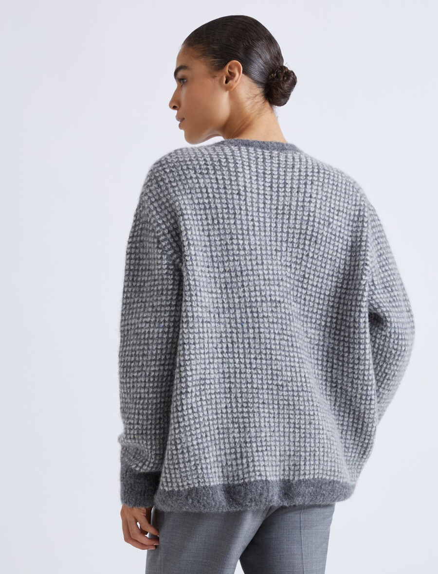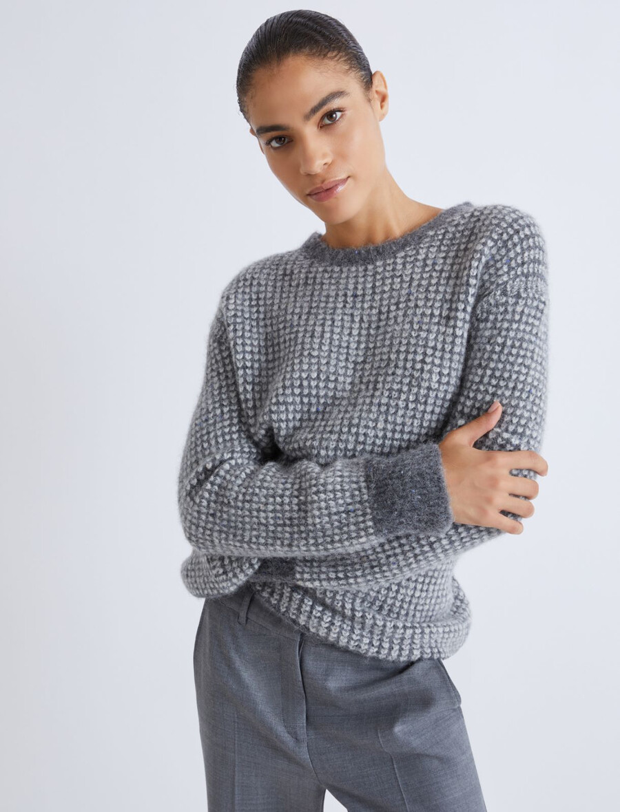 Pensato per i tuoi giorni liberi: questo maglione gioca con il tocco caldo e materico del filato di baby alpaca, ulteriormente accentuato dall’effetto nodo. Le spalle scese e la vestibilità squadrata rendono questo capo perfetto da indossare con jeans o una gonna in pelle al polpaccio.