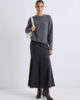 Tessuto in morbida maglia di alpaca elasticizzata, vestibilità squadrata e spalle larghe. Il filato bottonato conferisce una leggera texture 3D, che si abbina armoniosamente alla gonna fluida in viscosa.
