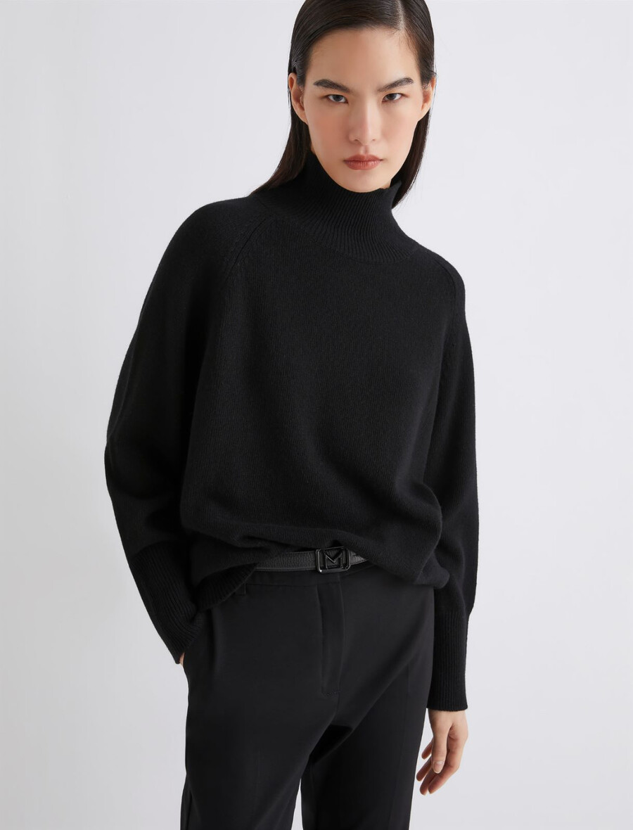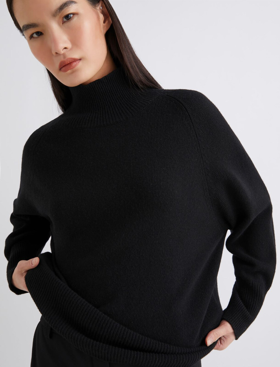 Un fedele alleato per la stagione fredda: questo maglione con collo rialzato è realizzato in filato misto cashmere per una sensazione di morbidezza e calore. Indossalo con la minigonna plissettata e un cappotto per un look da città sofisticato.