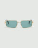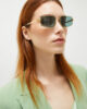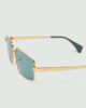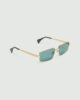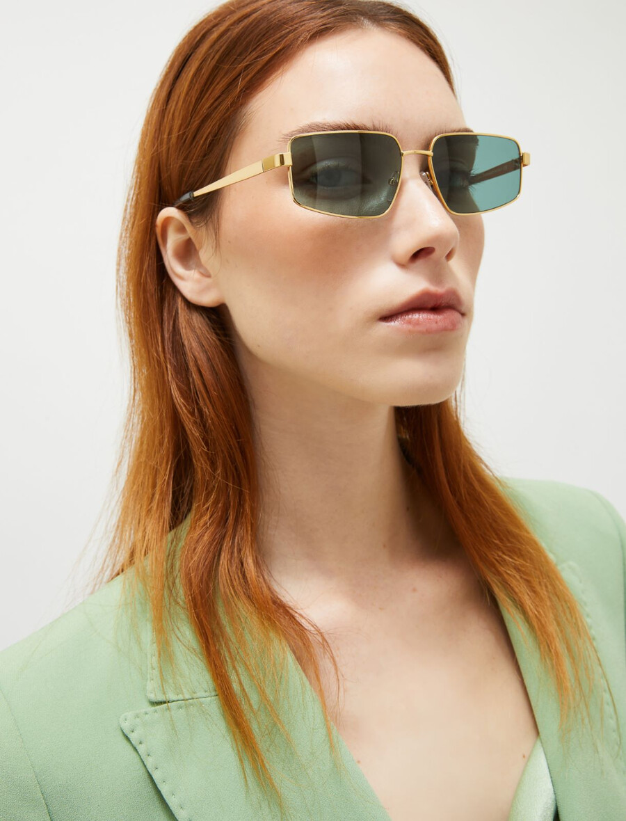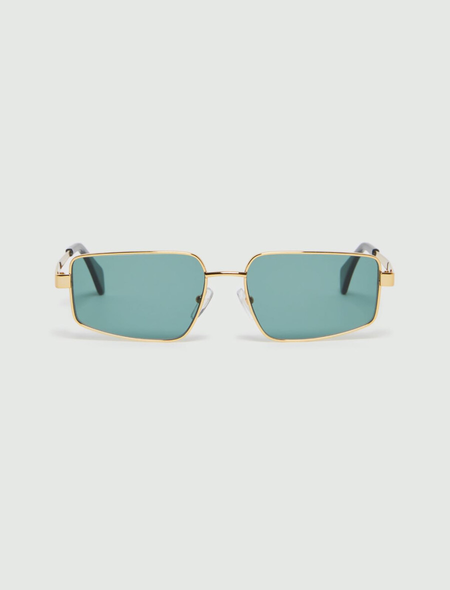 Questi occhiali da sole in metallo dalla forma geometrica vantano uno stile vivace ma grintoso. Lenti verdi e finitura dorata sulle parti in metallo. Terminali delle aste in acetato.