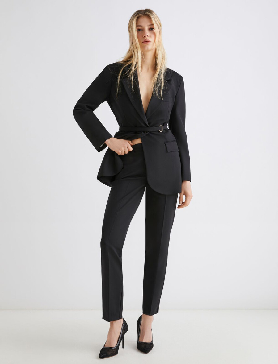 • Pantaloni in tessuto misto lana elasticizzato effetto twill