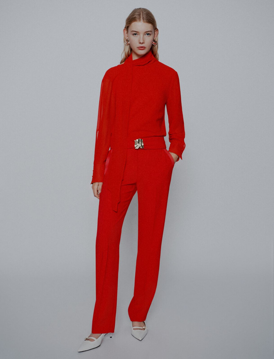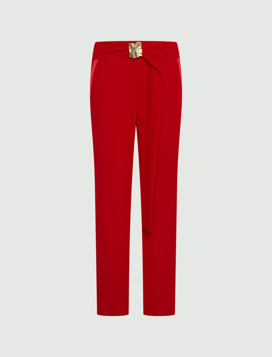- Pantaloni in crêpe envers satin con dettagli in raso