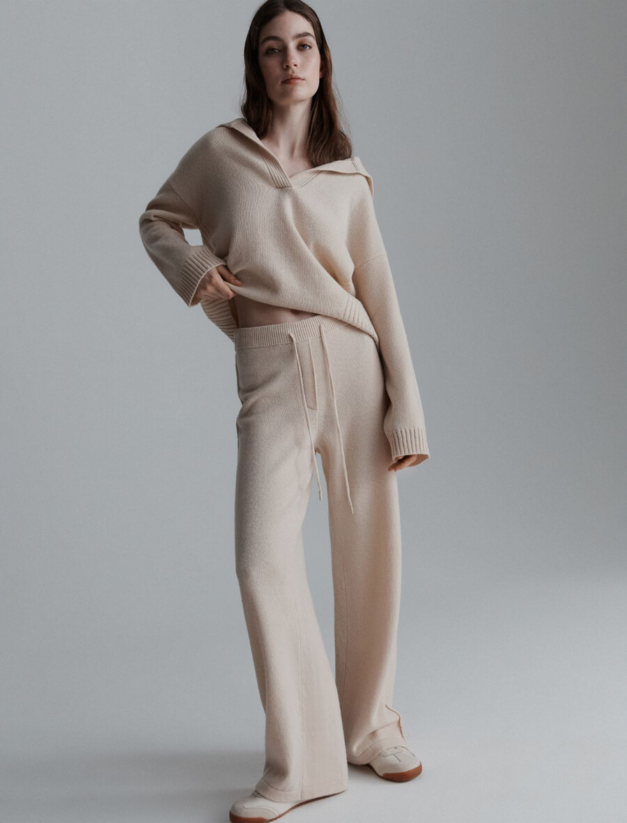 Per le giornate in città o per i momenti più informali, questi pantaloni in maglia sono una scelta di tendenza. Il modello a gamba dritta vanta una vita elasticizzata regolabile con coulisse e può essere indossato sotto un piumino per uno stile active chic.