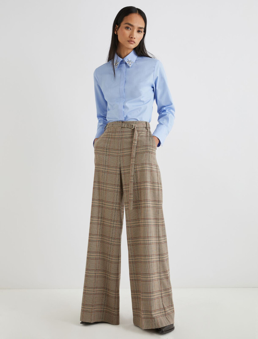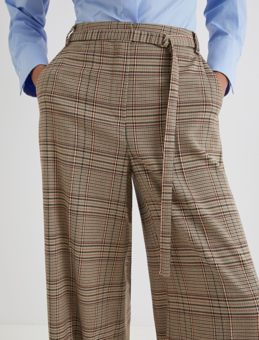 Eleganti per l’ufficio o la città: questi pantaloni a gamba larga vantano una nuova interpretazione del motivo tartan, mentre la sottile cintura in vita aggiunge un tocco femminile.