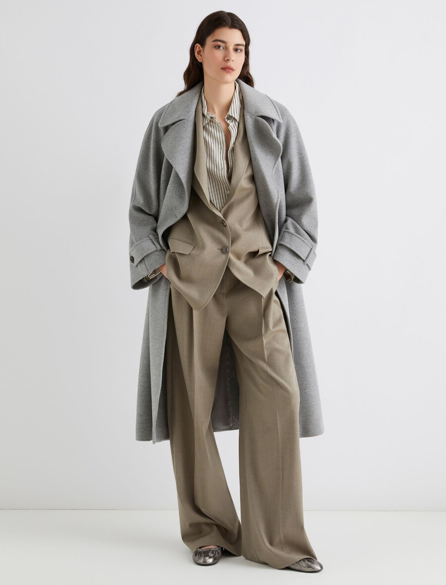 Cerchi uno stile elegante sia per la città che per l’ufficio? Prova questi pantaloni ampi realizzati in un avvolgente e morbido twill di misto lana, dalla vestibilità morbida per un tocco ancora più chic.