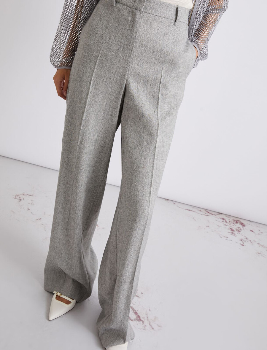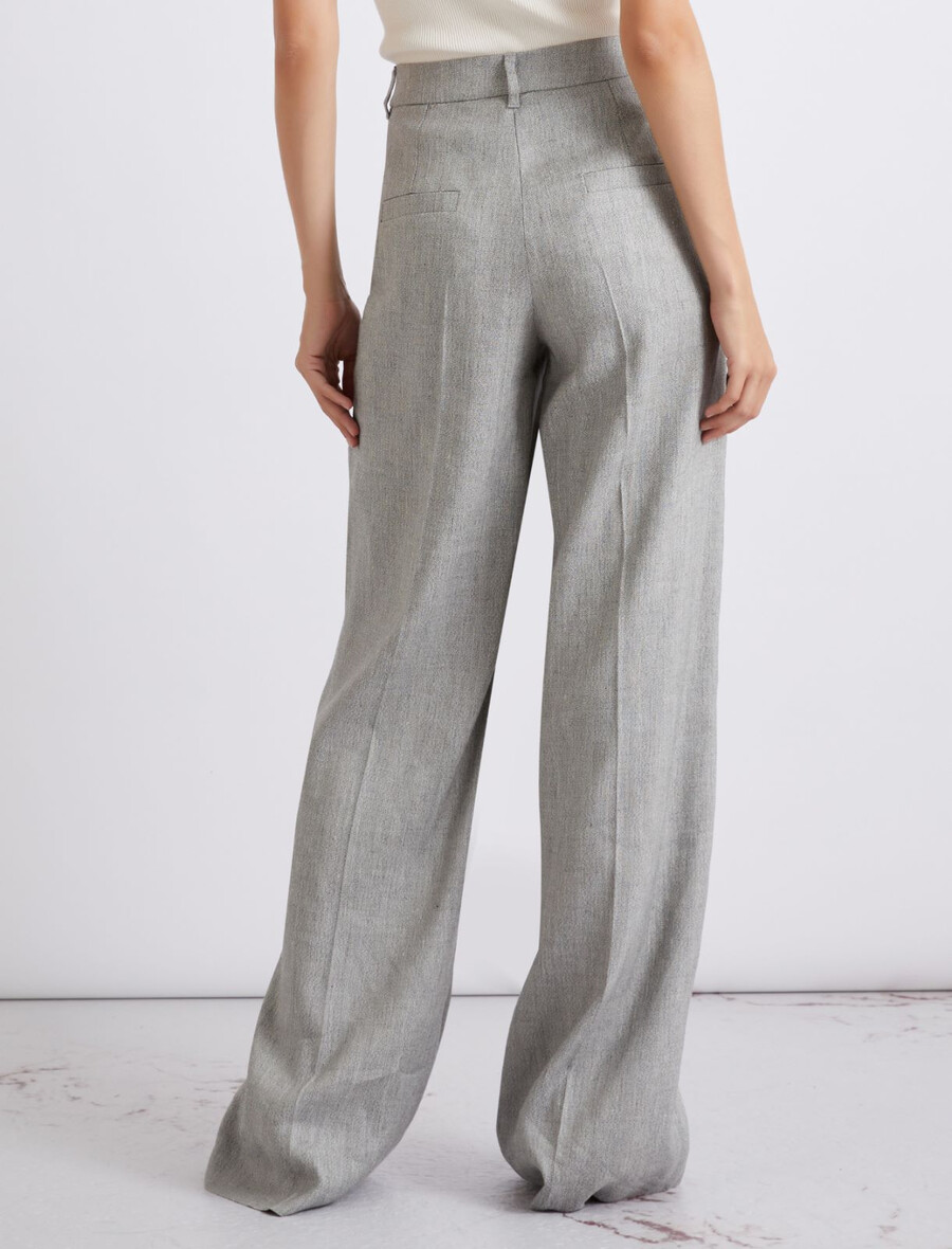 Pantaloni palazzo in grisaglia di lino e viscosa – GRIGIO