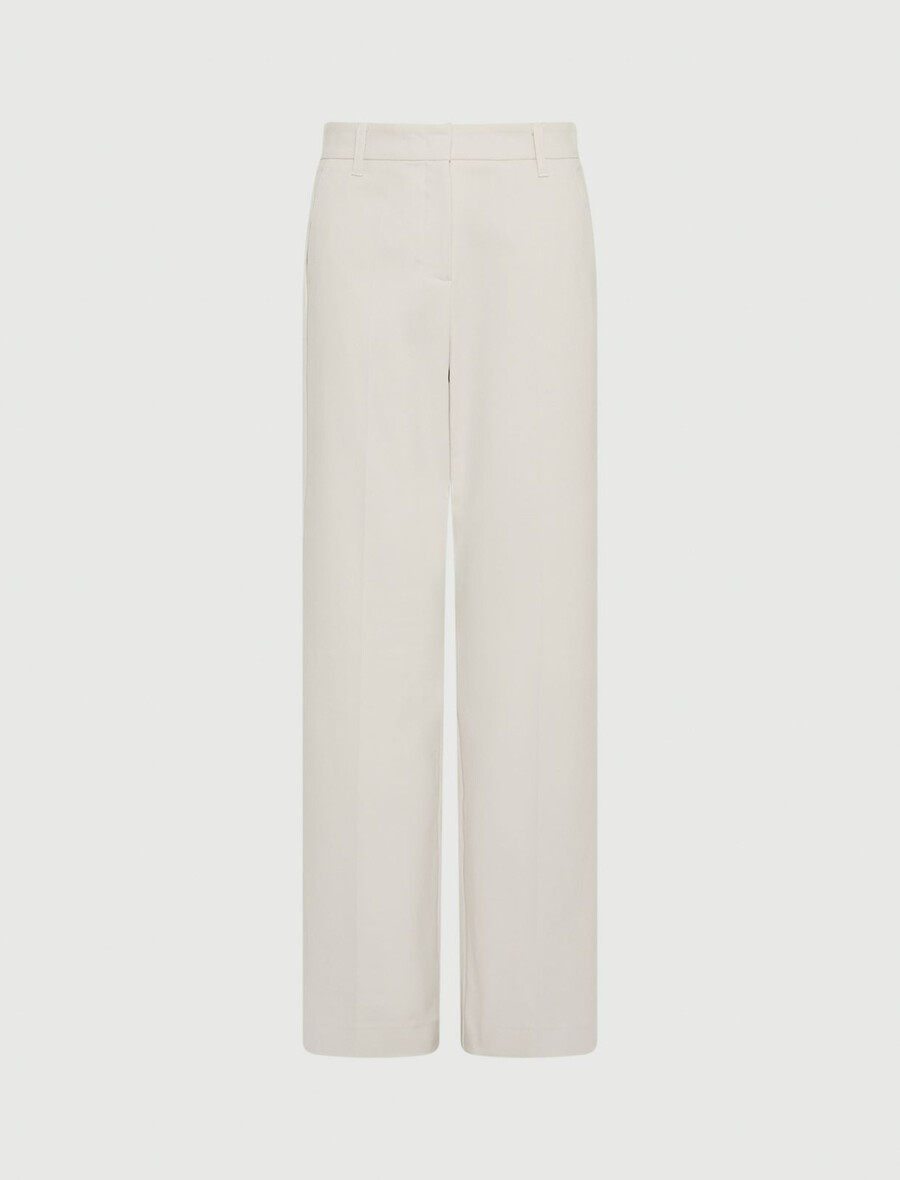 Questi pantaloni in cotone elasticizzato, dal taglio slim per una silhouette ben definita, sono perfetti per i look di tutti i giorni. Crea qualsiasi outfit desideri, abbinandoli a una camicia, un blazer e delle slingback.