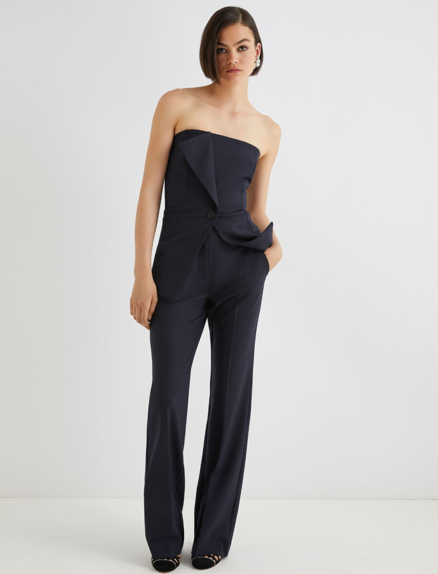 Questi pantaloni fluidi in lana elasticizzata con orlo svasato diventeranno un vero must-have per i tuoi look più audaci. Prova il modello con un blazer corsetto o semplicemente con un gilet per un outfit sorprendente.