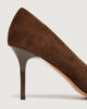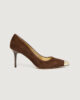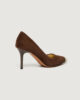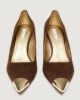 - Décolleté in suede con punta metallica finitura oro chiaro