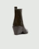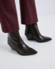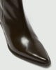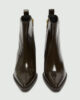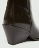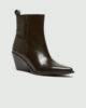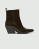 Stivali sopra la caviglia di ispirazione cowboy. Il modello presenta una punta affusolata, un tacco largo e un profilo diagonale. Il guardolo sporgente aggiunge un tocco audace.