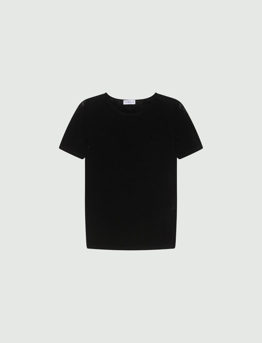 - T-shirt in tessuto di pizzo ultraleggero misto viscosa
