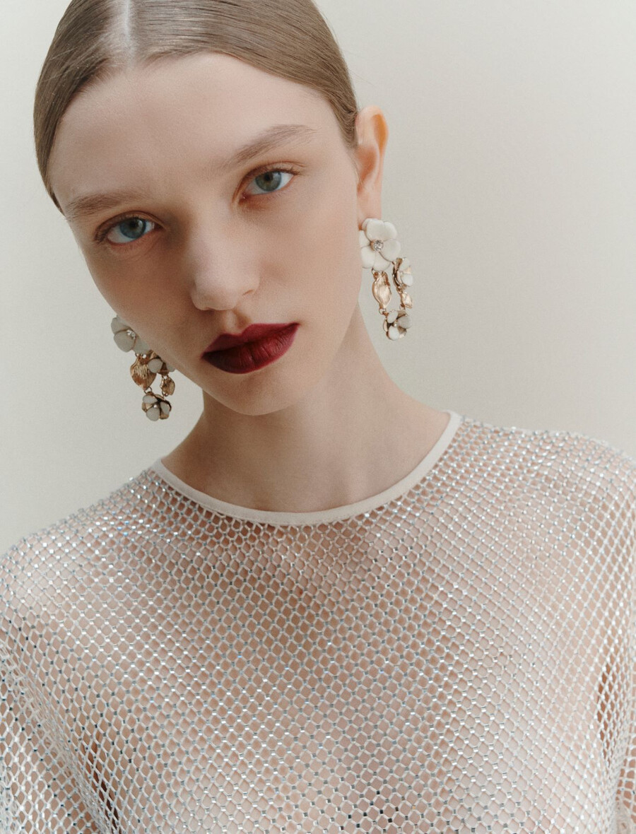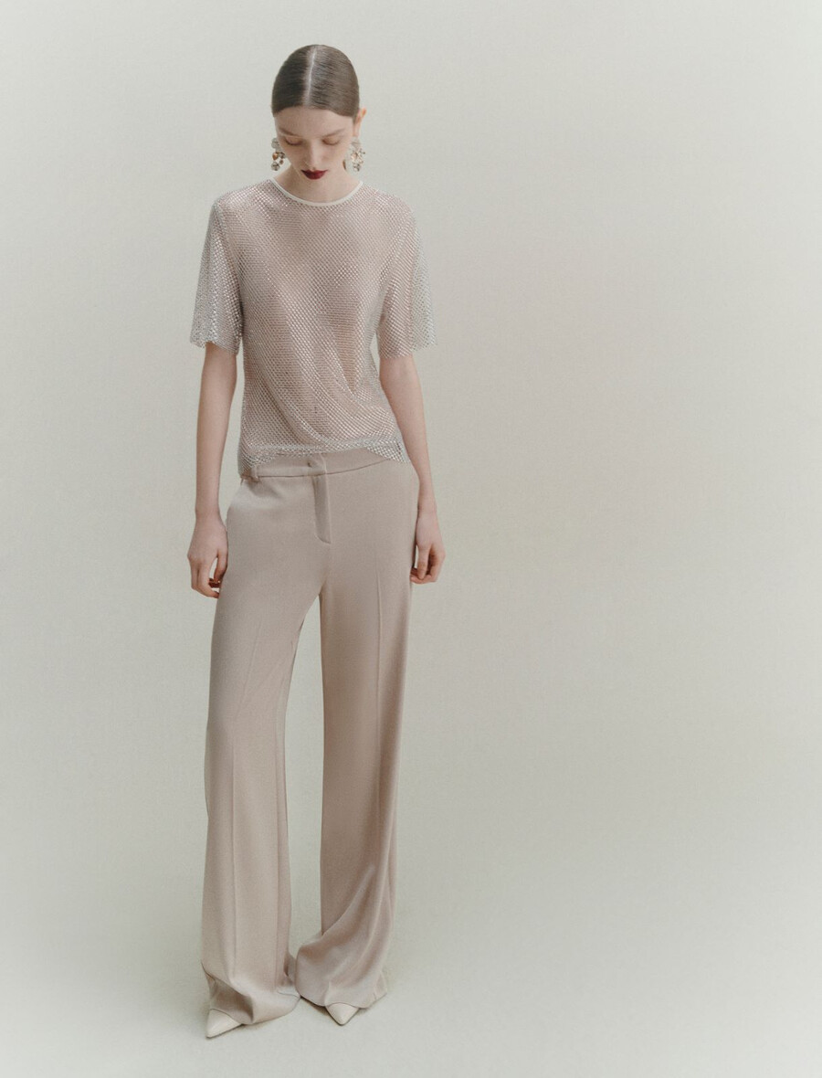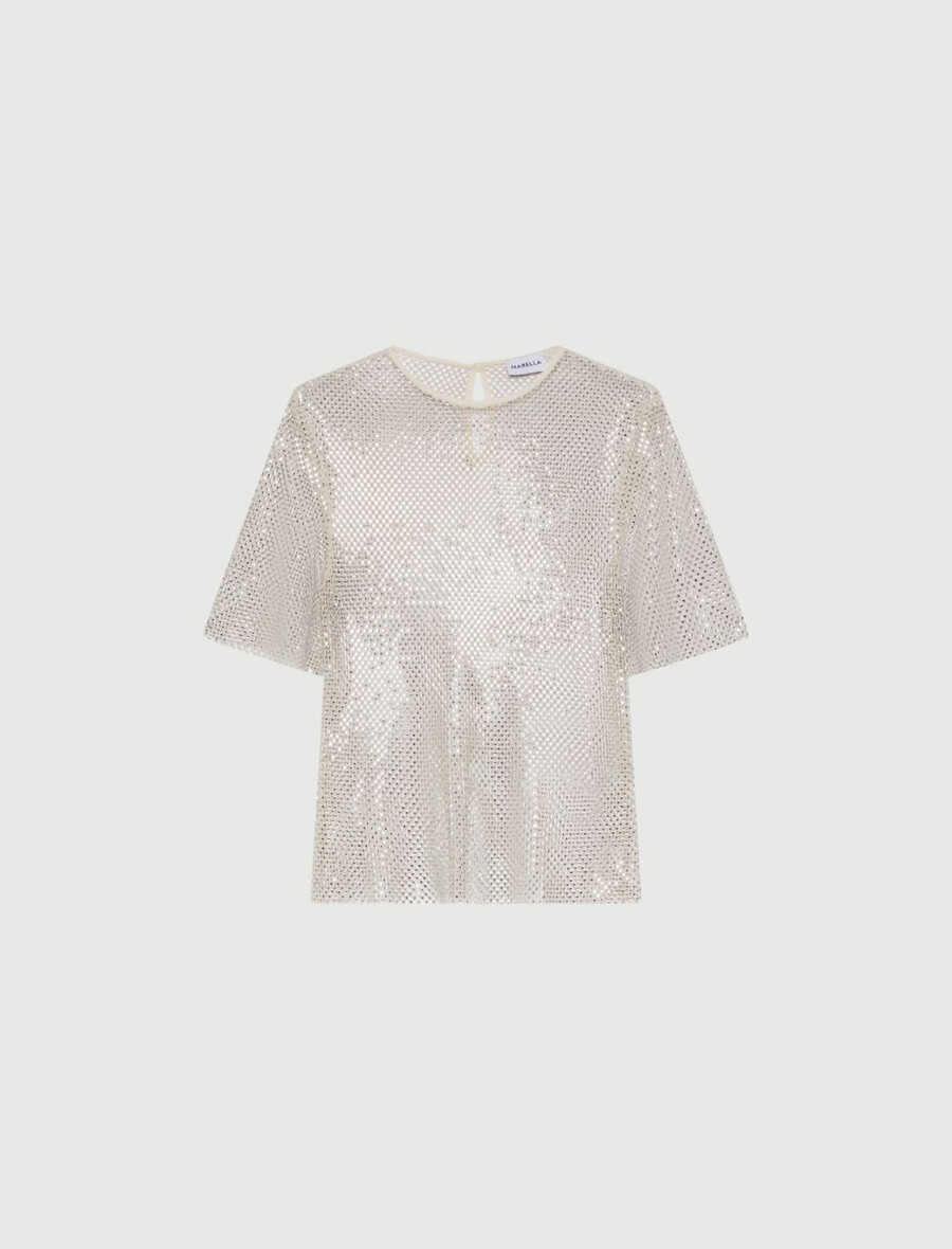 - T-shirt in rete tecnica con strass