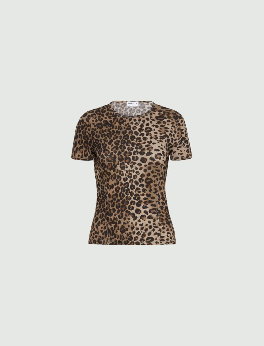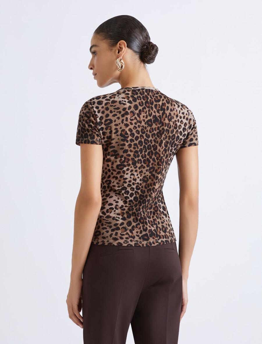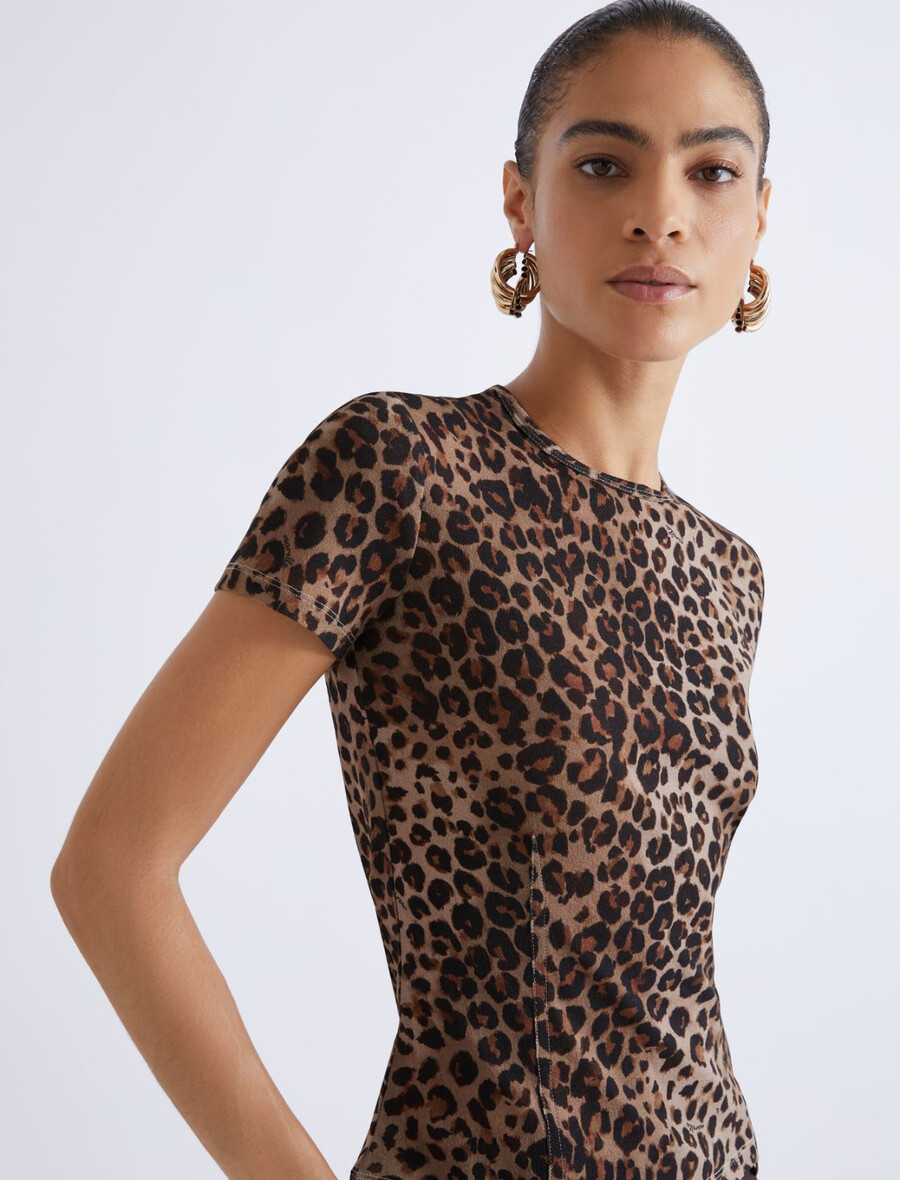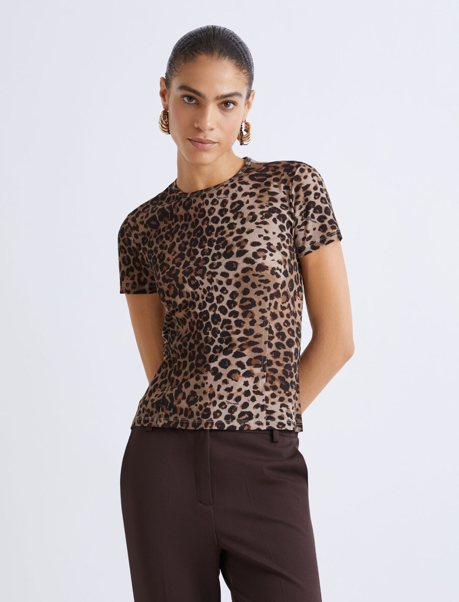 Chiamata a tutte le donne ruggenti con questa T-shirt dedicata alle amanti della stampa maculata: il modello slim fit in morbido jersey di tulle vanta impunture per un look più dinamico e si abbina bene a un blazer o a un cardigan.
