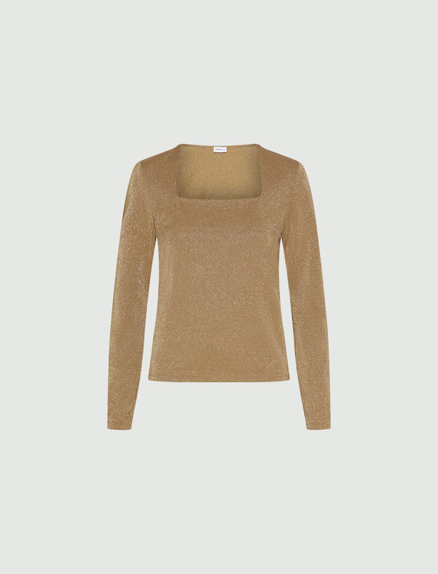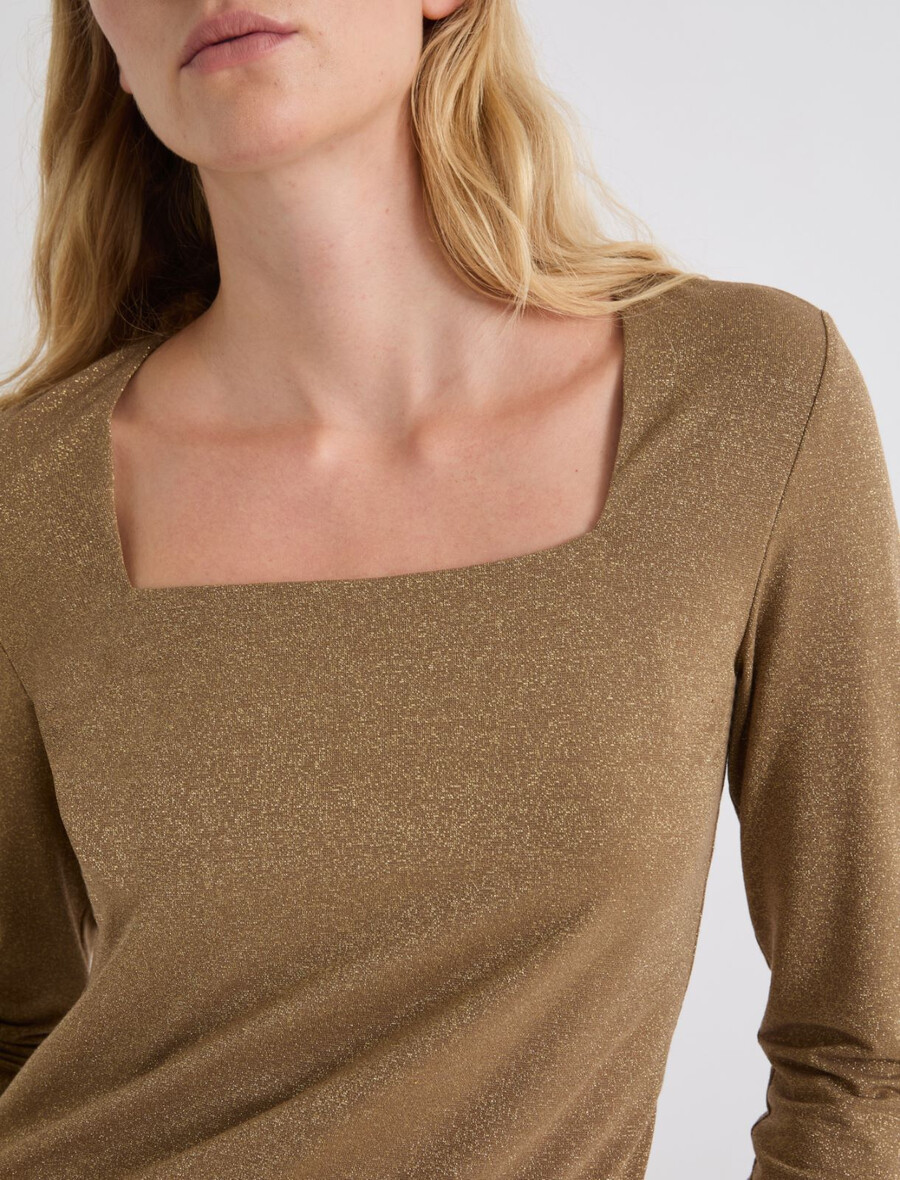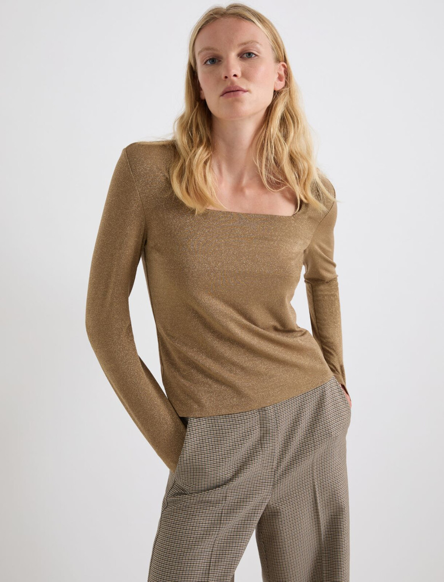 Una versione cool della T-shirt a maniche lunghe con ampia scollatura quadrata e lurex scintillante nella trama.