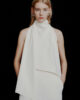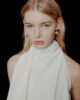 Questo top con spalle scoperte, completato da una lunga fascia da annodare al collo, emana un fascino metropolitano ed elegante. Il corpetto che avvolge la figura si abbina armoniosamente a pantaloni palazzo o gonne a tubino.