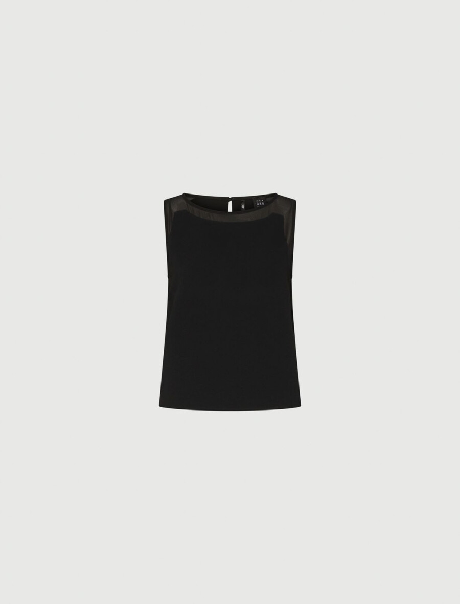 La scollatura e il giromanica di questo top senza maniche dalla vestibilità femminile sono impreziositi da una sensuale applicazione in georgette. Un sofisticato mix di materiali da indossare con pantaloni fluidi o con i tuoi jeans preferiti.