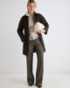 - Chiusura con bottoni coperti da patta e tasche laterali a filetto