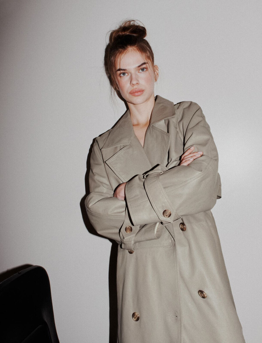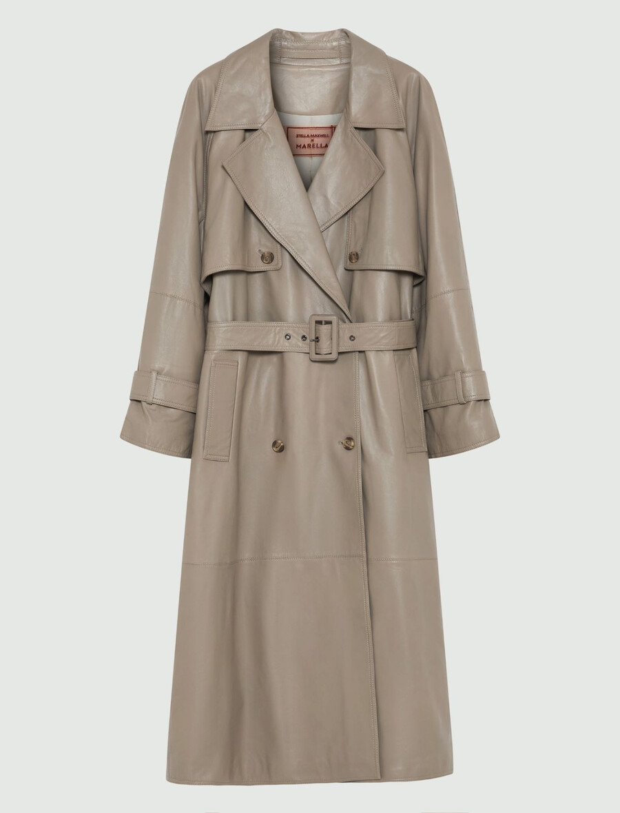 - Trench in pelle leggera con imbottitura interna