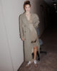 - Chiusura doppiopetto con bottoni e dettaglio cintura con fibbia rivestita